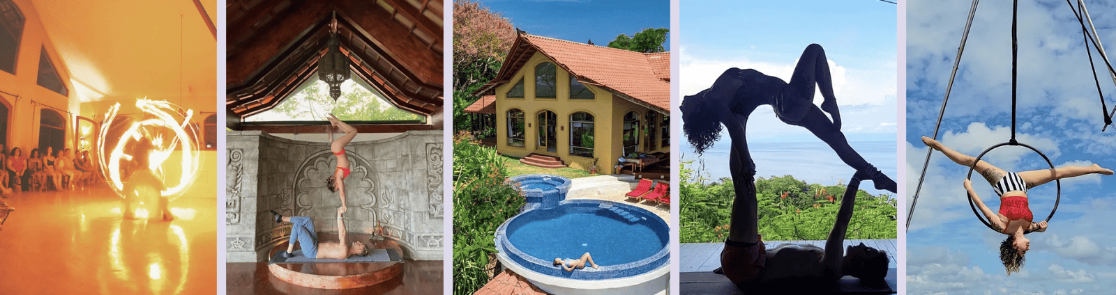 In addition to daily AcroYoga workshops, you will be able to choose from a variety of specialty workshops including aerial hoop (lyra), pole dancing, handstands, and flow arts and fire performing. The retreat will culminate with a photo shoot followed by a dazzling circus arts showcase from the performers of Out on a Limb.