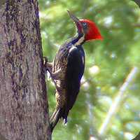 There are several tropical and colorful birds that are around the property daily, such as the mot mot (momoto in Spanish), whose plumage is an iridescent rainbow. We also have long-tailed manakins, which are a small black bird with a tail 2-3 times its body length, a blue back, and a red head. This shy and elusive bird is difficult to photograph because it never seems to sit still. The manakin is a favorite of birdwatchers who visit Costa Rica to see exotic species. We also commonly have onsite Costa Rica’s most impressive woodpecker, the lineated woodpecker, which has a big red crest on its head.