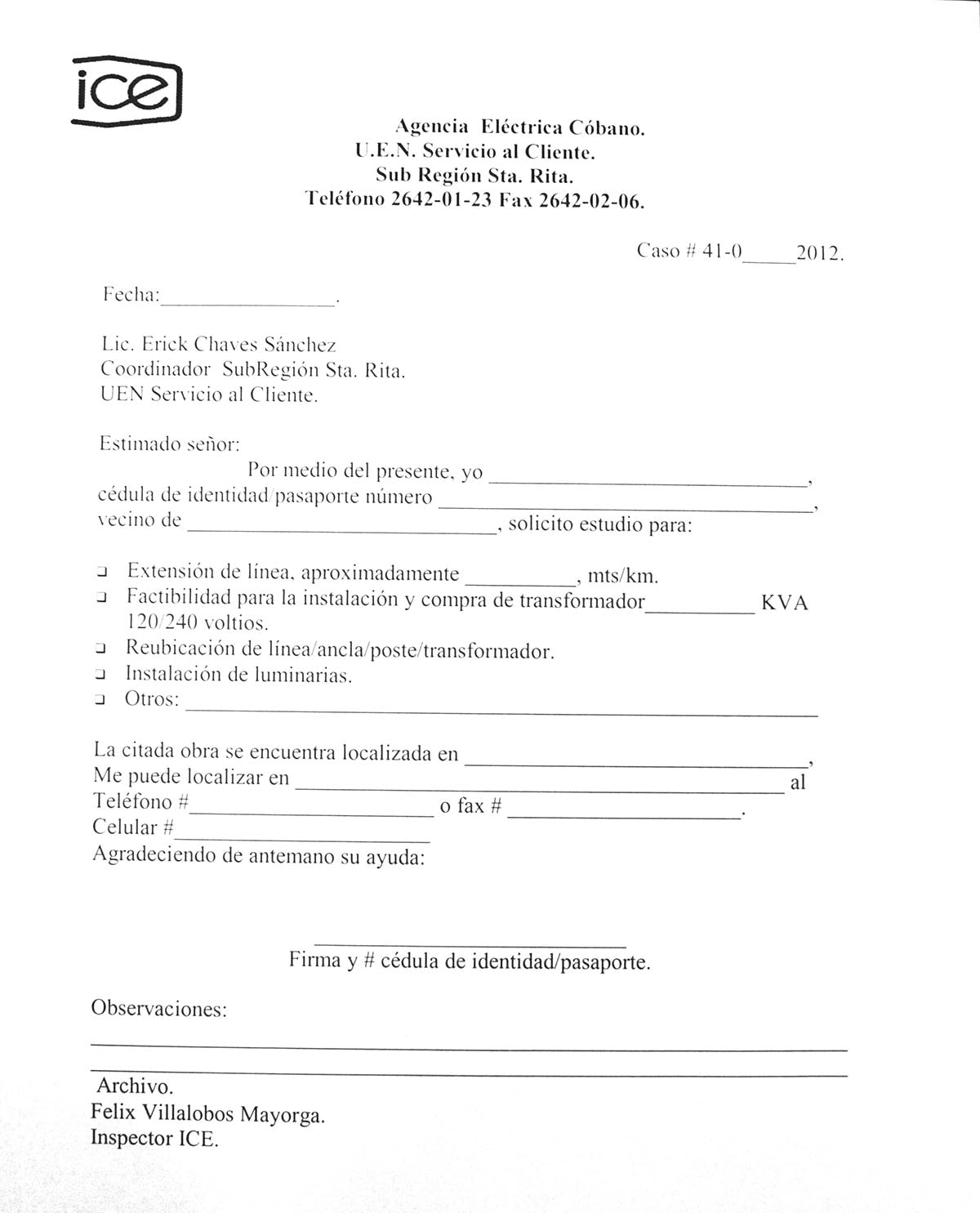 Although ICE won’t pay for it, the area’s monkeys luckily have an ally at the local ICE office. Pilar, who is the head of the Cobano division, will immediately and for free, have the monkey-protection kit installed at your location, if you take it to her. She will do it for free, and give this job top high priority. Please bring her this information: